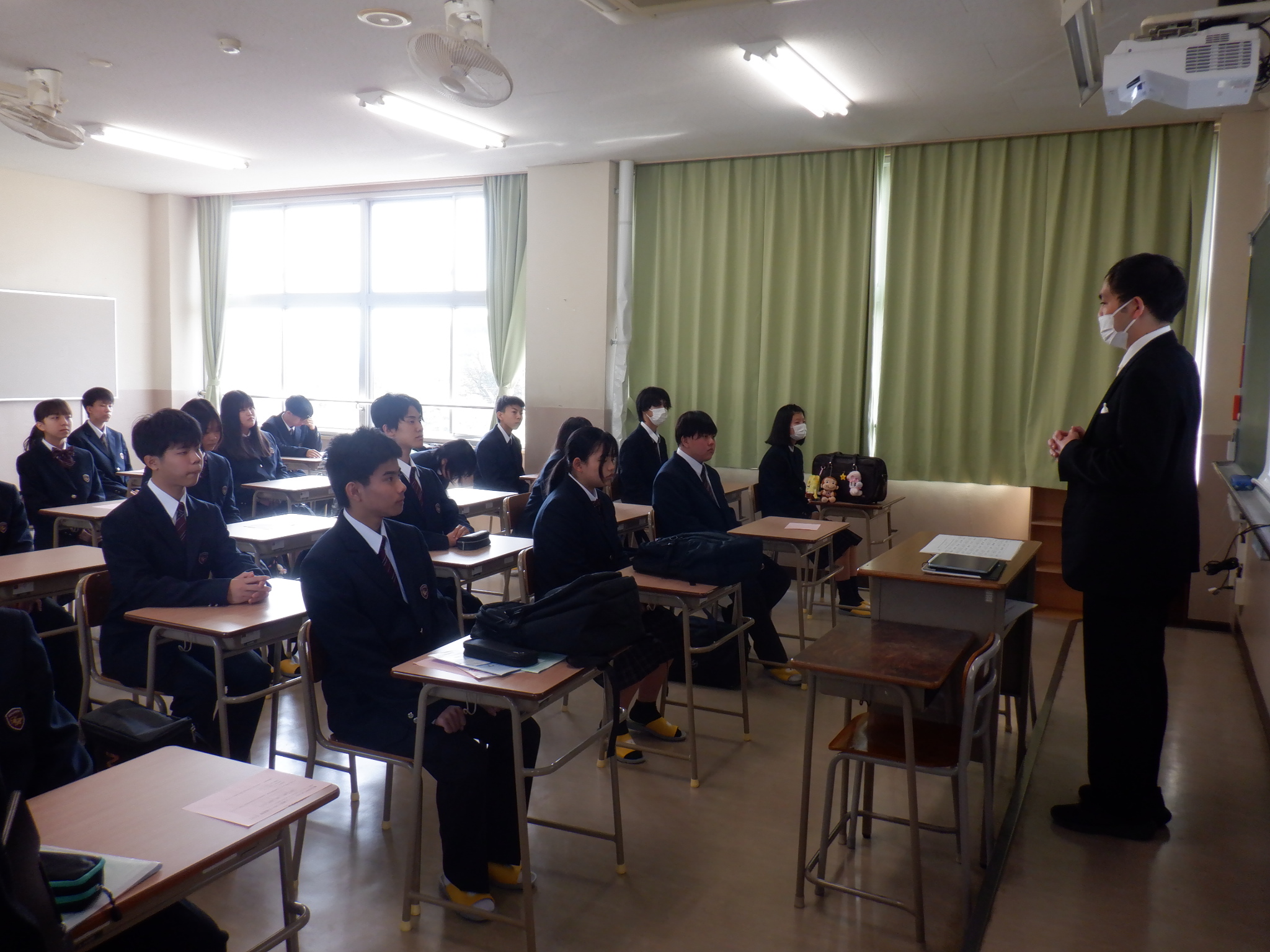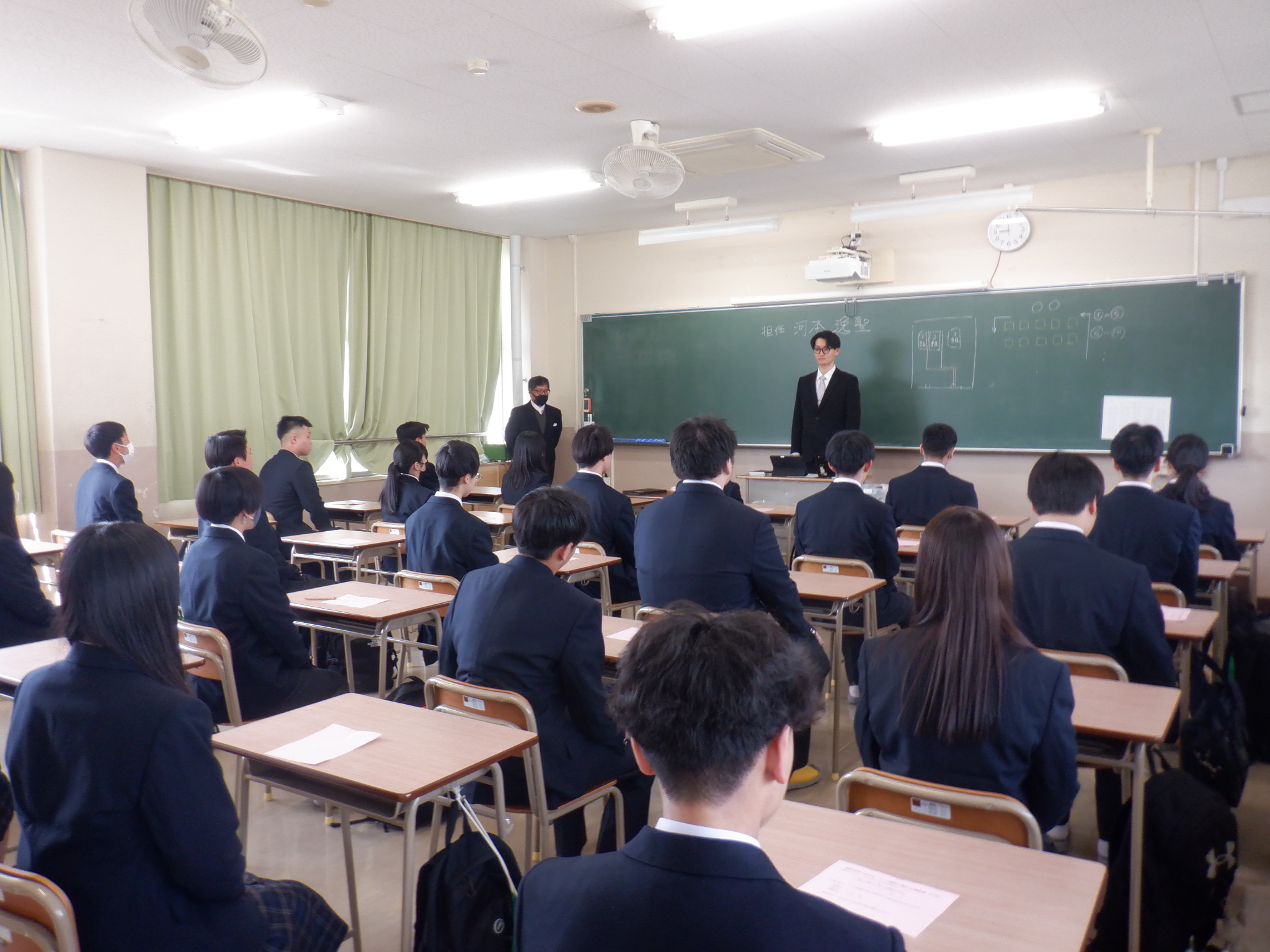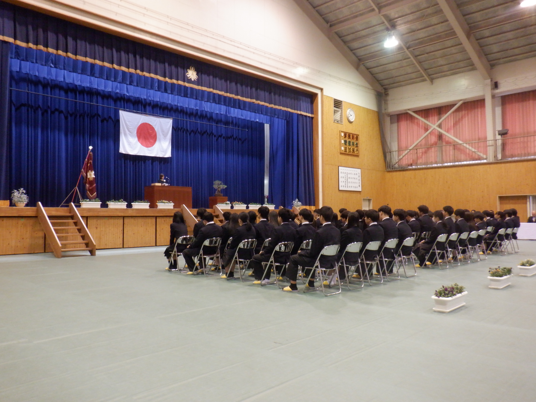 4月9日に、入学式が行われました。新入生73名の入学が許可され、晴れて勝間田高校の新1年生となりました。入場の際には、不安そうな生徒もいれば、保護者に向かいピースをする生徒など、その様子は多種多様。しかしみな胸を張って入場していました。式が始まると、校長や来賓の方の式辞を真剣に聞き、代表生徒による宣誓は堂々たるものでした。式終了後のHRでは、緊張が解けたように穏やかな表情でこれからの学校生活について聞き入っていました。きっと、明日からの高校生活に期待で胸を膨らませていることと思います。