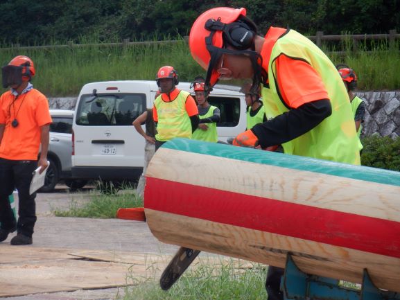 生徒からは、「1日目の練習会では、合わせ切りと簡易伐倒を講師の方に見てもらい、自分のうまくいかなかったところについて改善案を教えていただいたり、上手なところは褒めていただいたりしました。ほかの参加者の方もとても上手だったのでたいへん参考になり、有意義な時間を過ごすことができました。2日目の競技会では、1日目の反省を生かし、より良い結果を残すことができました。」という声がありました。