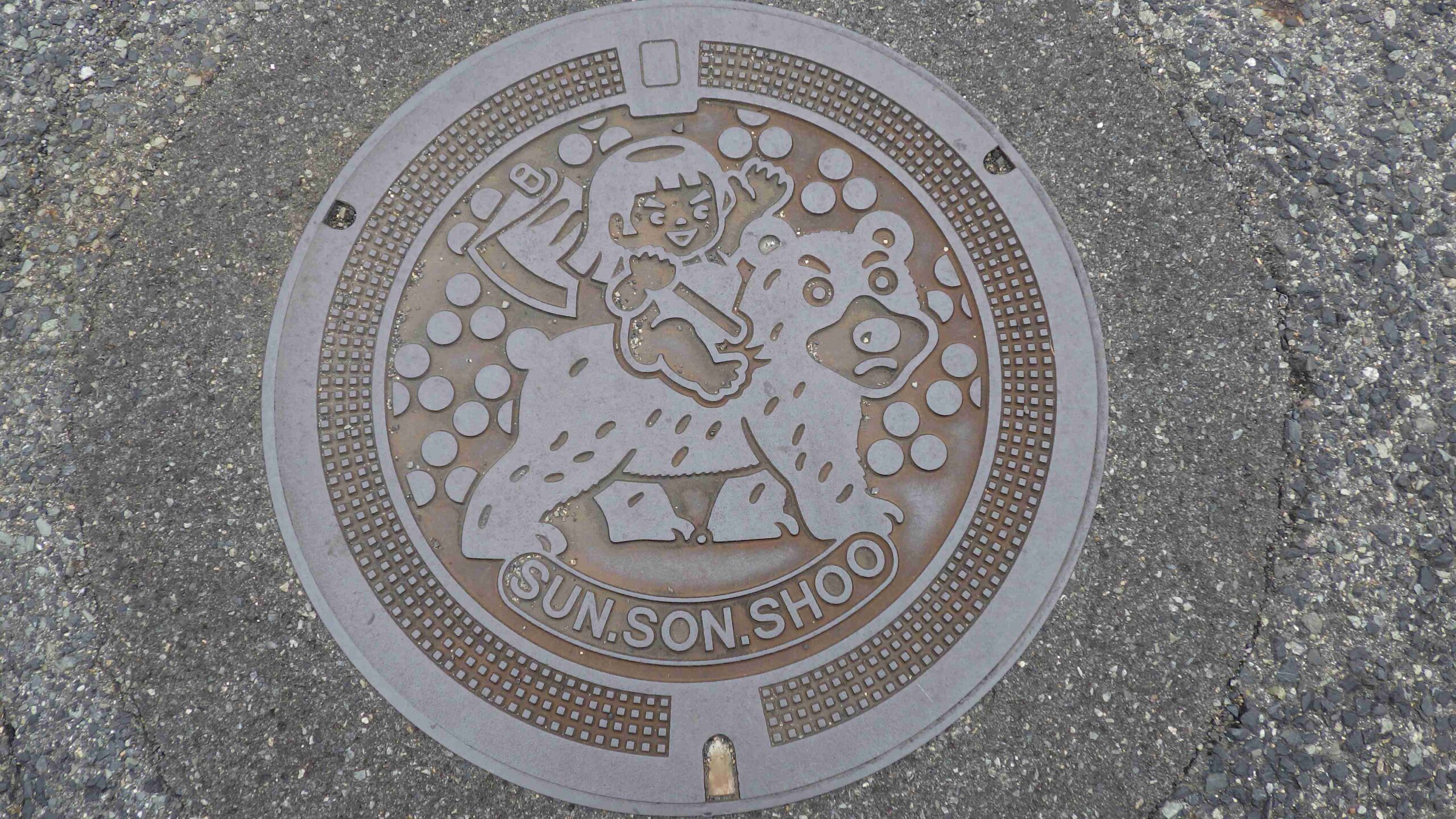 源頼光の四天王の一人として活躍した坂田金時(金太郎)が病で亡くなった際に祀られた「栗柄神社」や金太郎像を見て、きんと君のマンホールふたも確認しました。