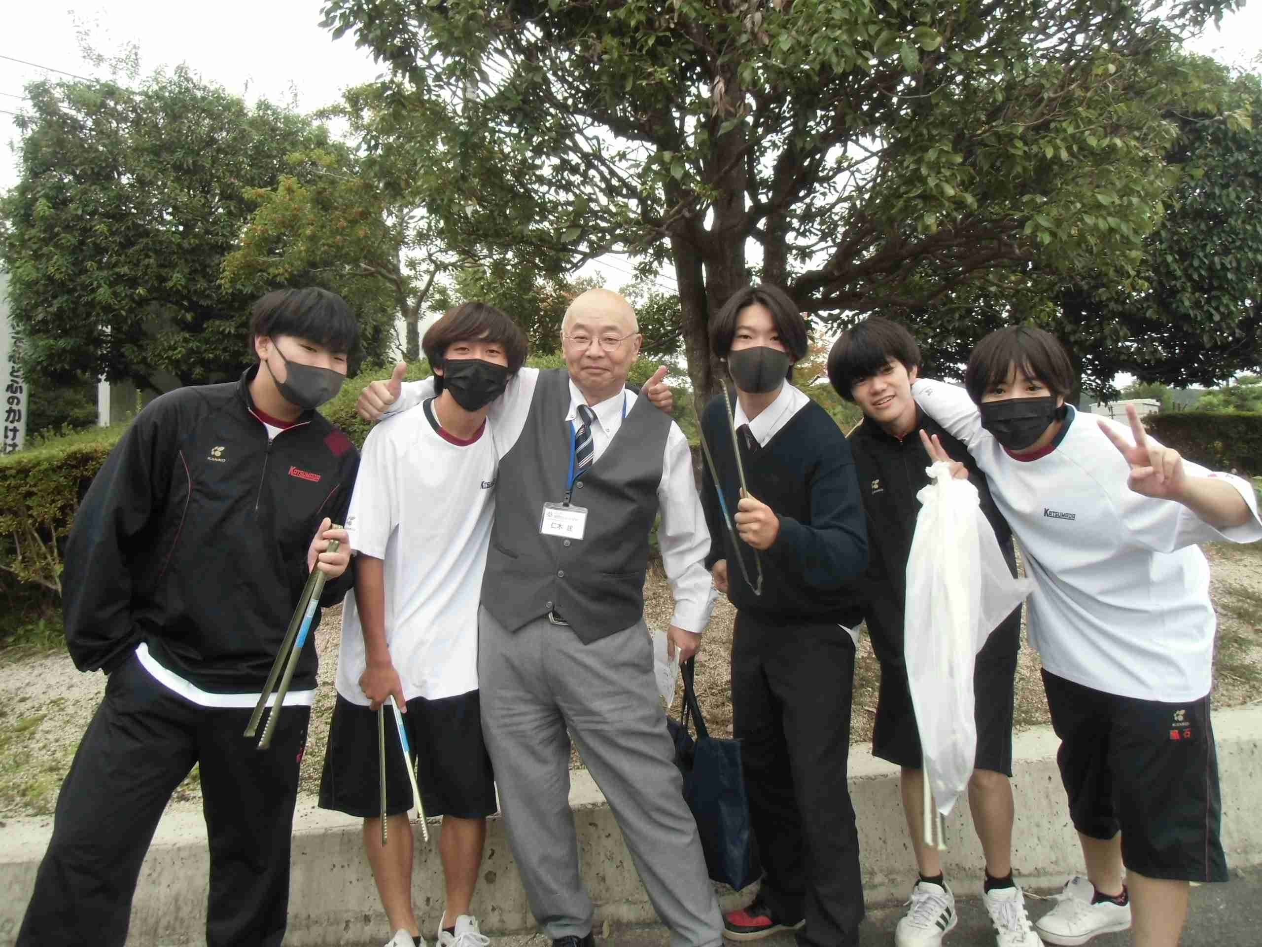 10月22日㈬午後、1年生の「産業社会と人間」の授業は、本校近くの史跡を清掃活動しながら散策する活動を行いました。9月10日には、歴史担当の先生に詳しく解説していただき、予習をしました。