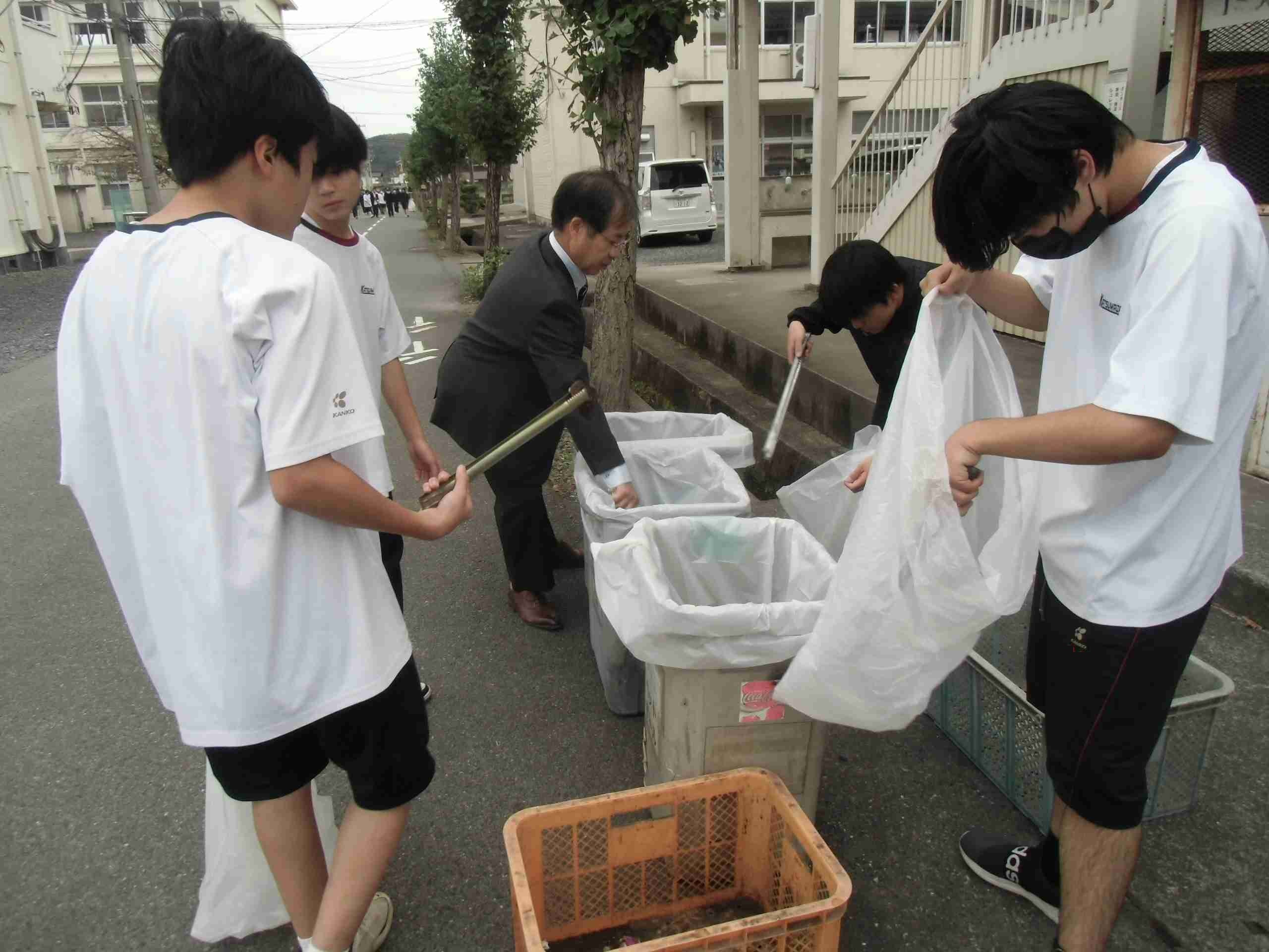 10月22日㈬午後、1年生の「産業社会と人間」の授業は、本校近くの史跡を清掃活動しながら散策する活動を行いました。9月10日には、歴史担当の先生に詳しく解説していただき、予習をしました。
