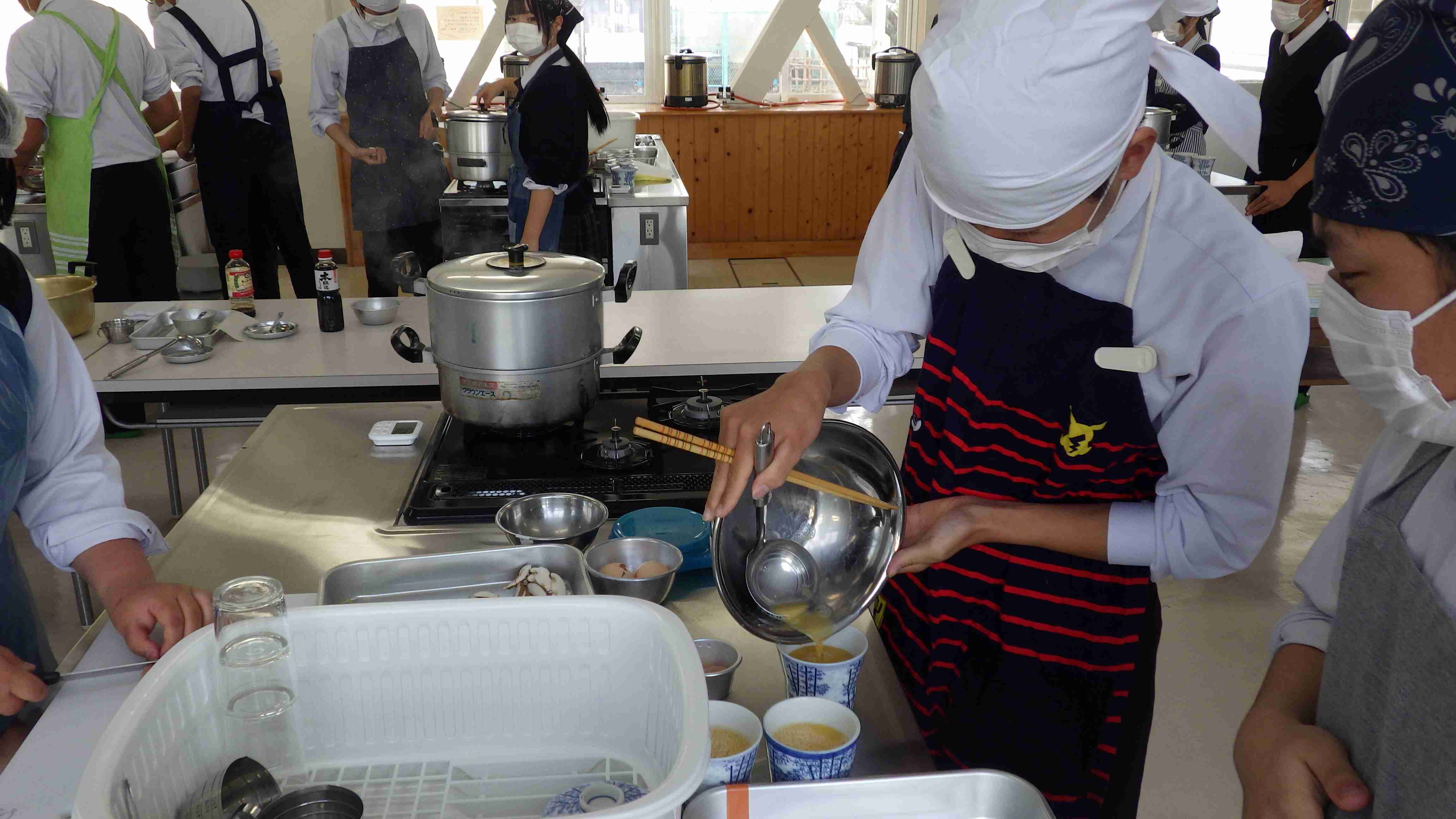 週に2時間の授業ですが、1時間で調理実習を行っています。