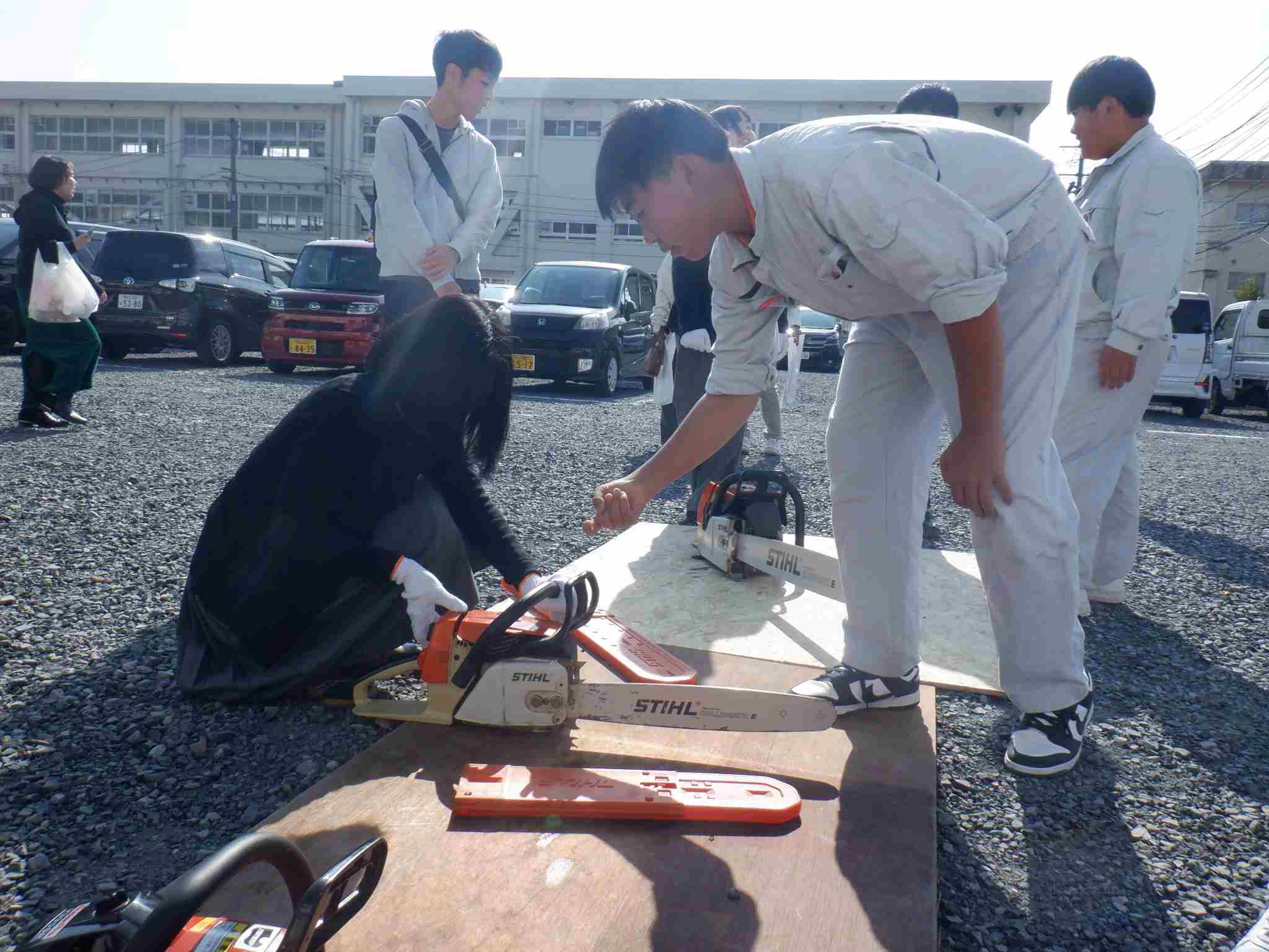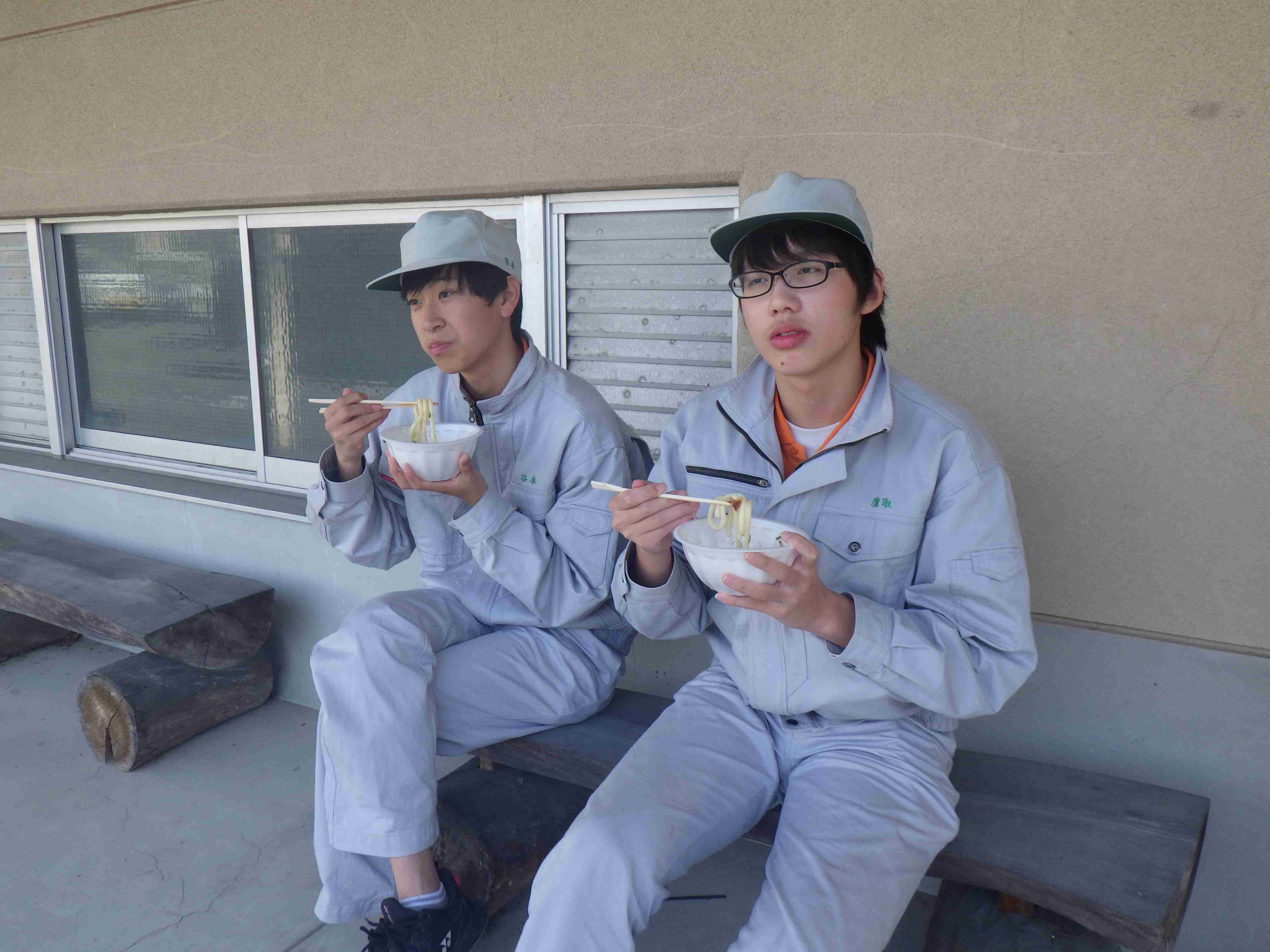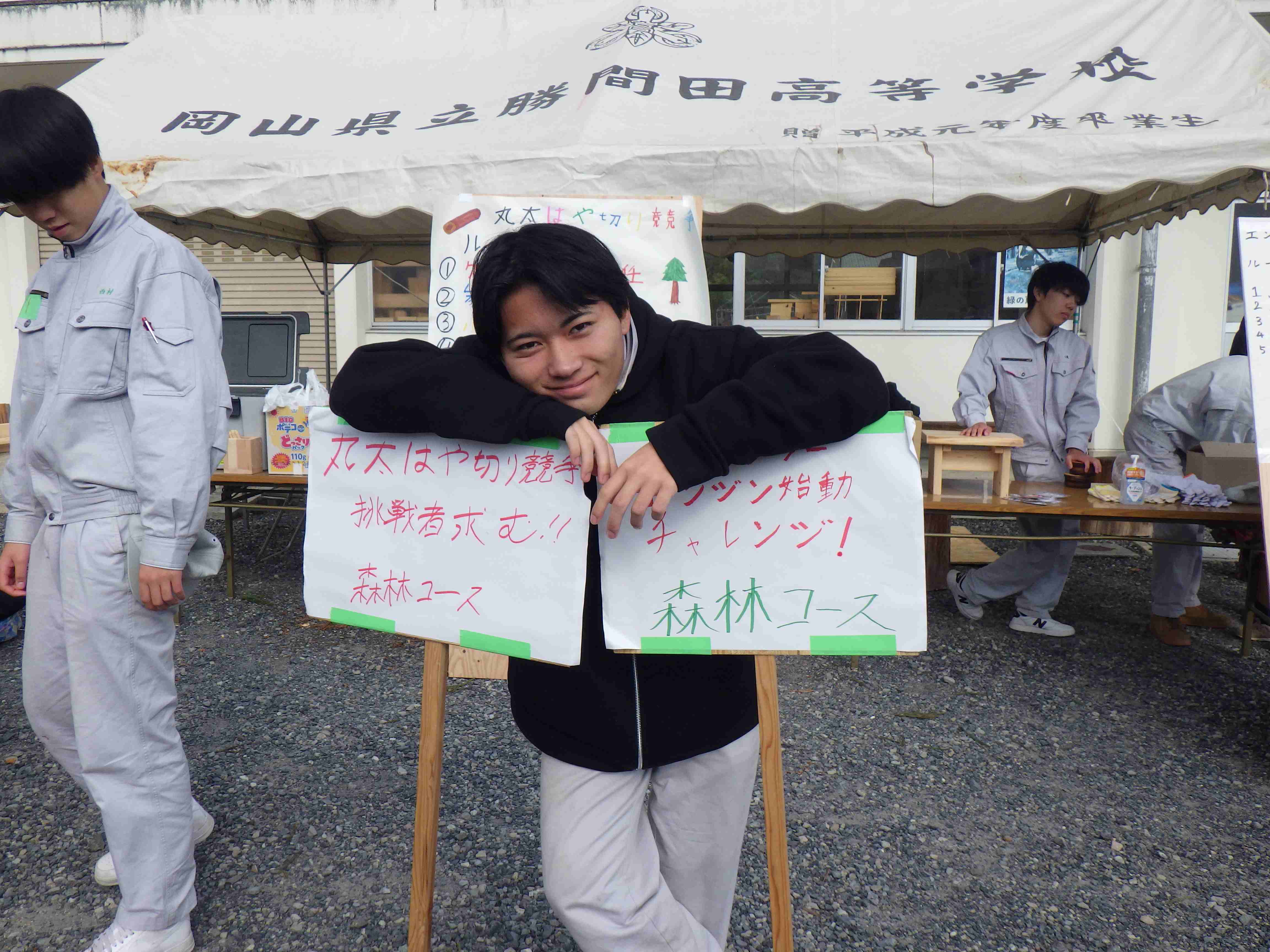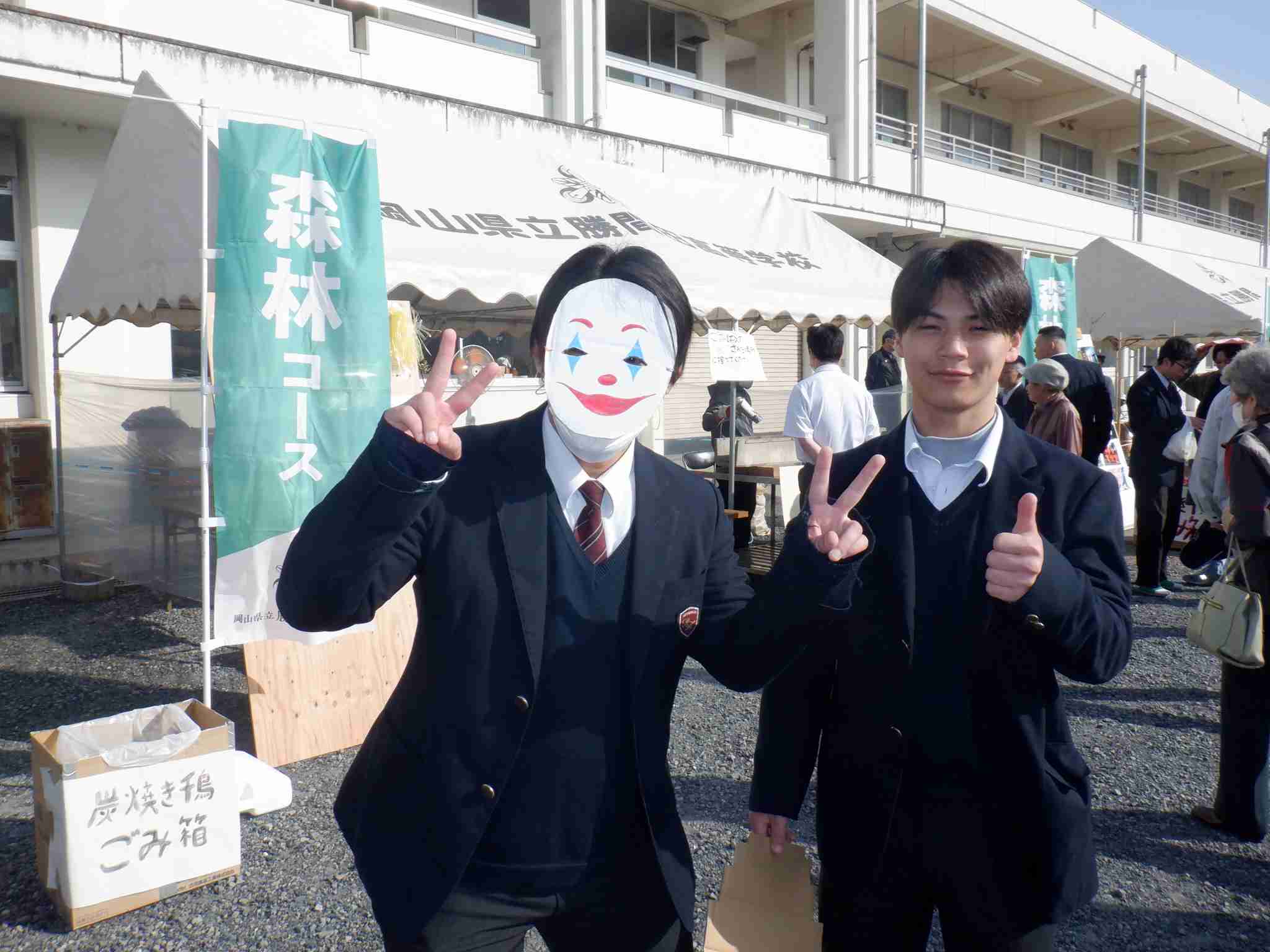 生徒からは「1~3年の出し物全部が人気で、しいたけと焼き鳥はすぐに売れて、チェンソー体験も多くの人に来てもらい最高の文化祭でした。3年生は最後だったので、一人ひとりがどうやったら来てくれた方に楽しんでもらえるかを考えて3年間で学んだ知識を最大限に出し切った文化祭でした。私も、お面をかぶってすごく頑張って宣伝をしたり、並んでいる人の整列や、交通誘導をしたりと頑張りました。カレーうどんが食べたかったですが、我慢して自分の仕事を全うしました。」という声がありました。