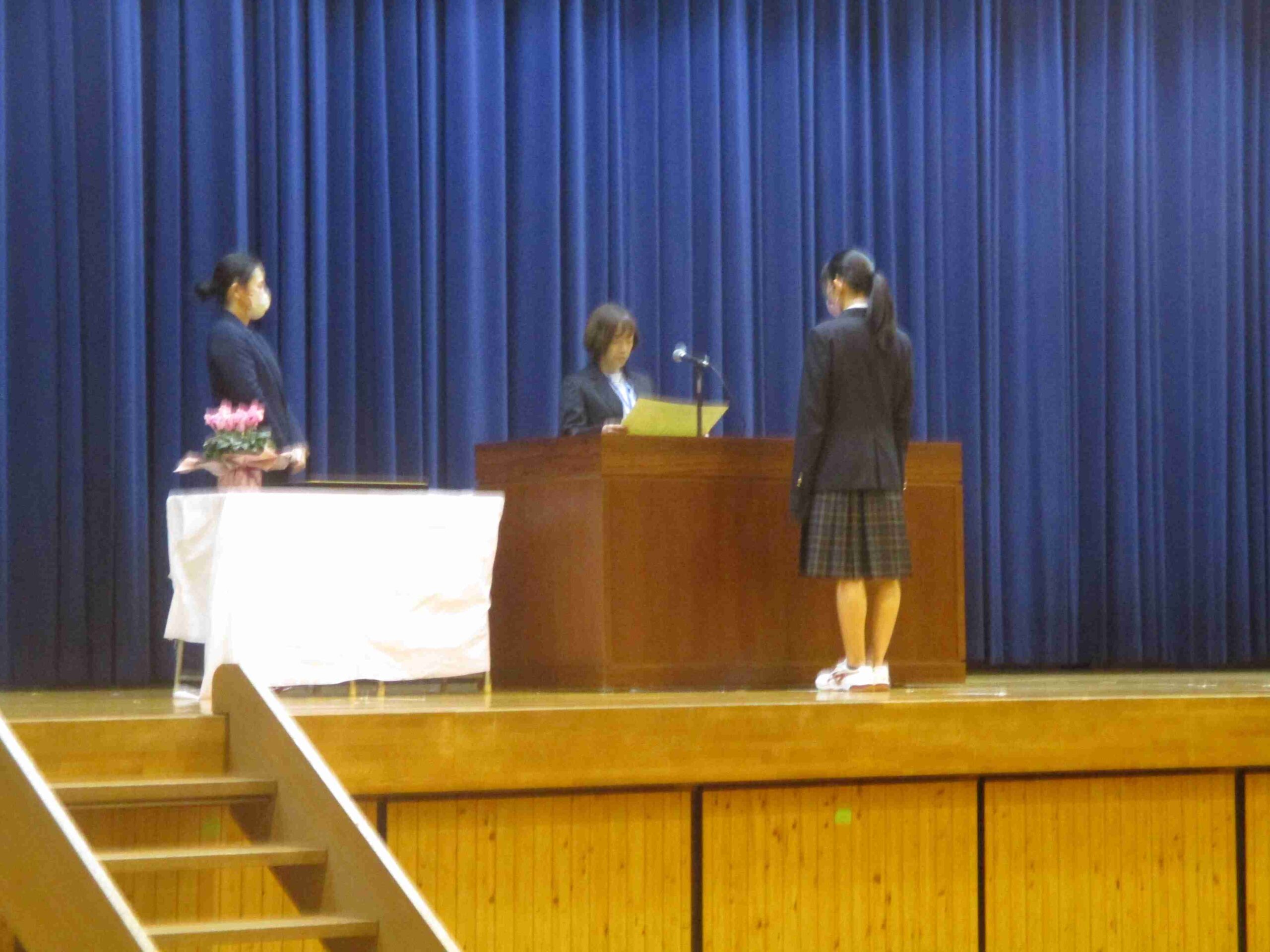 日本学校農業クラブ全国大会が10月22日、山梨県立農林高等学校で開催されました。農業に関する知識を競う農業鑑定競技草花の部に園芸コースの2年生が出場し優秀賞を受賞、終業式で表彰伝達をしていただきました。夏休みから全国大会に向けて学習に取り組み、その成果として入賞することができました。