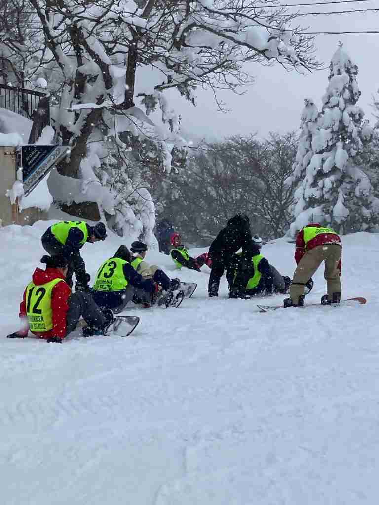 本年度は19名の参加者となり、スキー班、スノーボード班に分かれて技能講習を行いました。初めてスキー・スノーボードをする生徒が多い中、初日2時間の講習であっという間に滑れるようになってしまいました。これは本当に予想外・・・