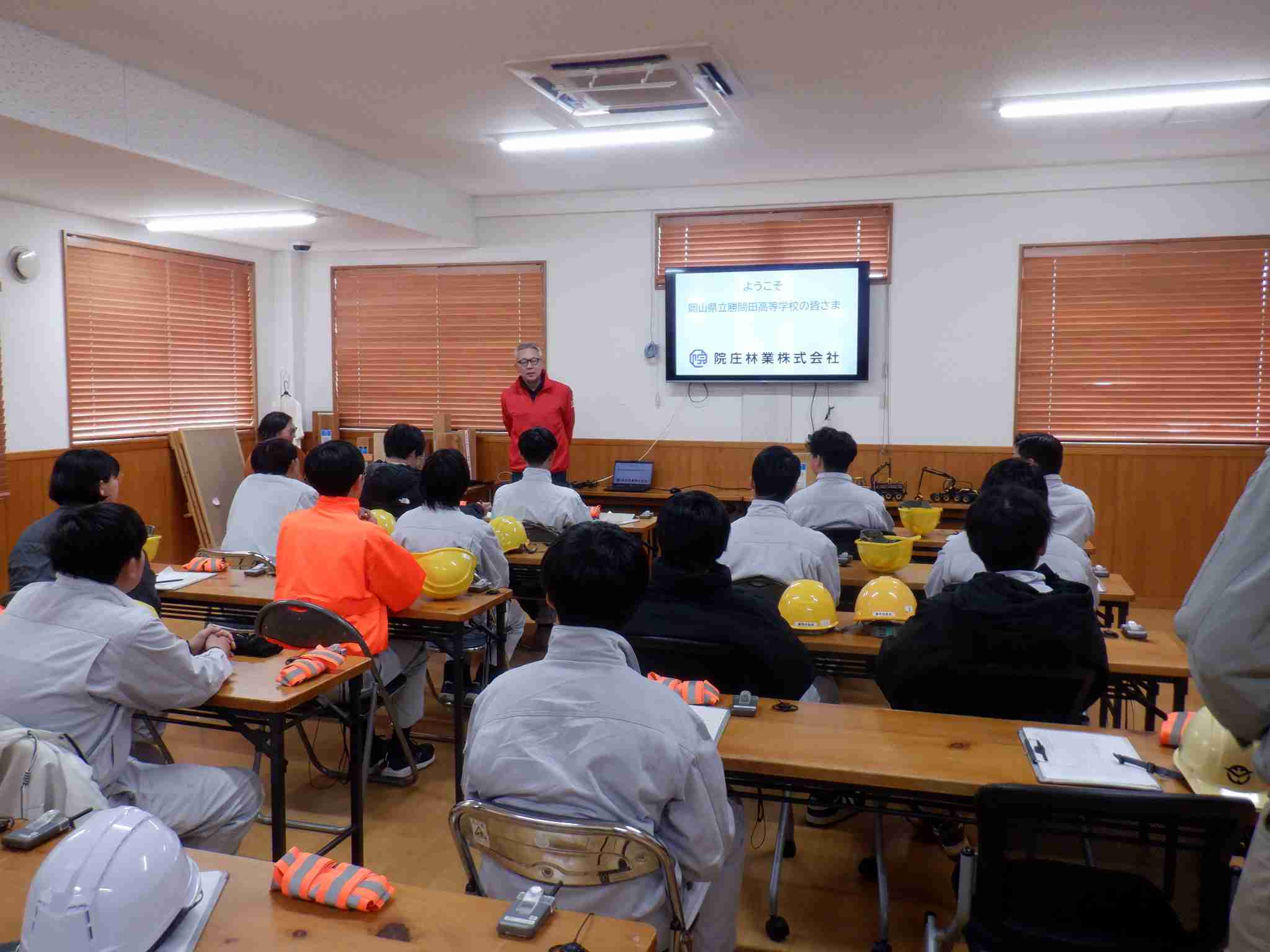 1月30日(金)、森林コース2年生が津山綜合木材市場と院庄林業株式会社の見学に行かせていただきました。